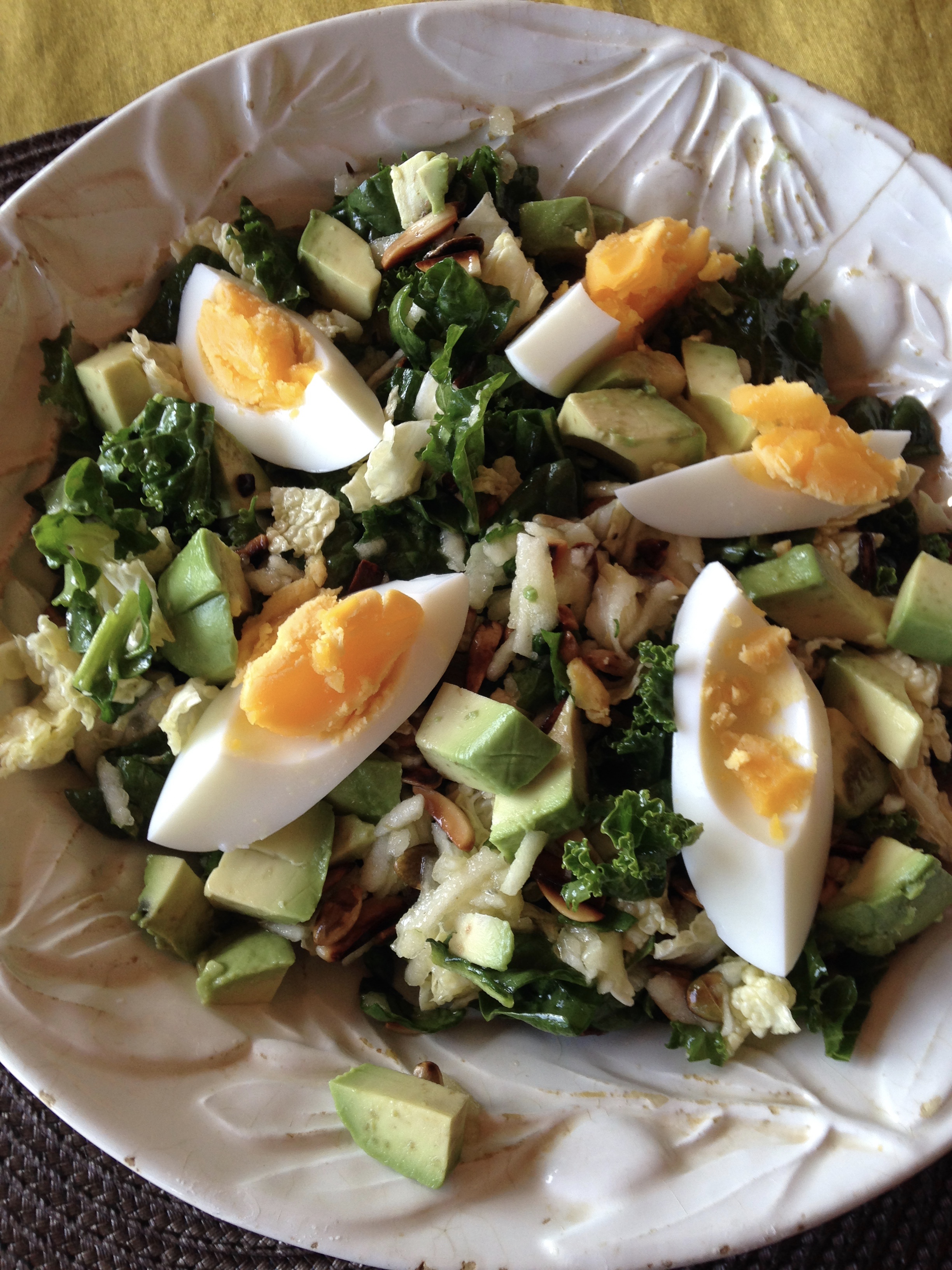 I usually have this salad, late morning after my Bootcamp workout. It’s a hearty meal that keeps me going until supper time.